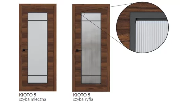 2. DRZWI KIOTO Z SZYBĄ RYFLOWANĄ W NOWYM KOLORZE ORZECH WARMIA