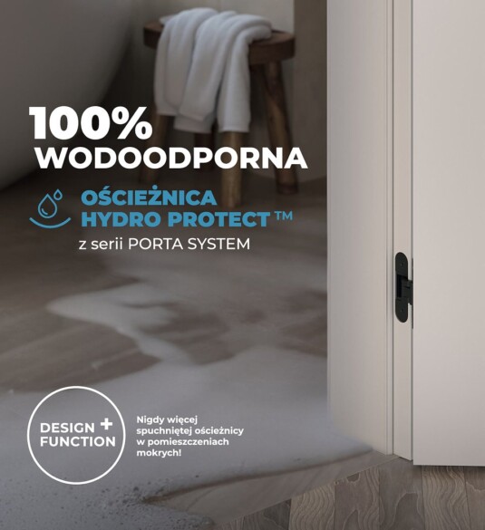 z serii PORTA SYSTEM już w sprzedaży. Wykonana jest z kompozytu drzewno-polimerowego do pomieszczeń typu „mokre”: łazienka, kuchnia, pralnia. Ościeżnica w kontakcie z wodą nie puchnie. Dodatkowo z zewnątrz wygląda identycznie jak standardowe ościeżnice regulowane.