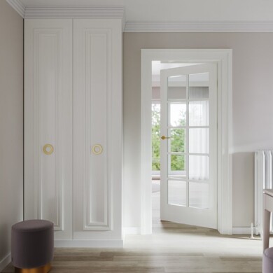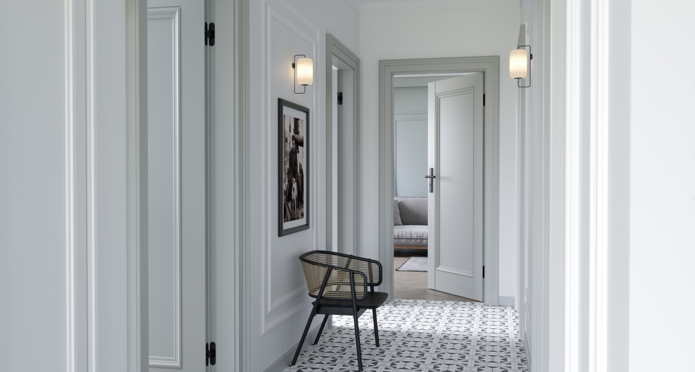 zaprojektowane w komplecie z listwami ozdobnymi pasującymi do ościeżnic, a wszystko wykończone Lakierem UV Premium Plus.