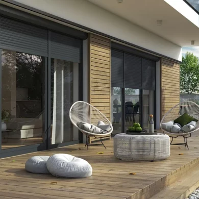 - Większa prywatność: Ciesz się swobodą w swoim domu bez obaw o niechciane spojrzenia z zewnątrz. Dzięki regulacji kąta nachylenia lameli w żaluzjach fasadowych oraz możliwości całkowitego zasłonięcia okien roletami, zyskujesz pełną kontrolę nad swoją prywatnością.